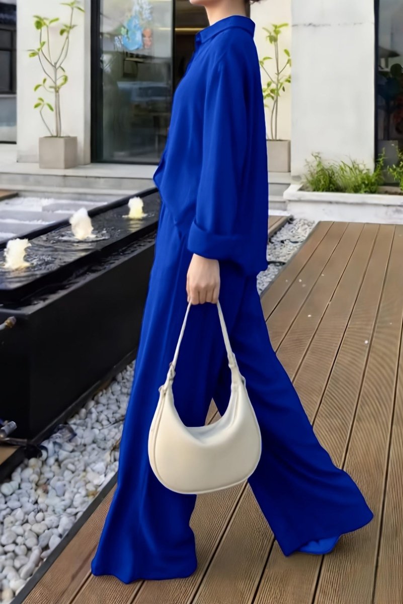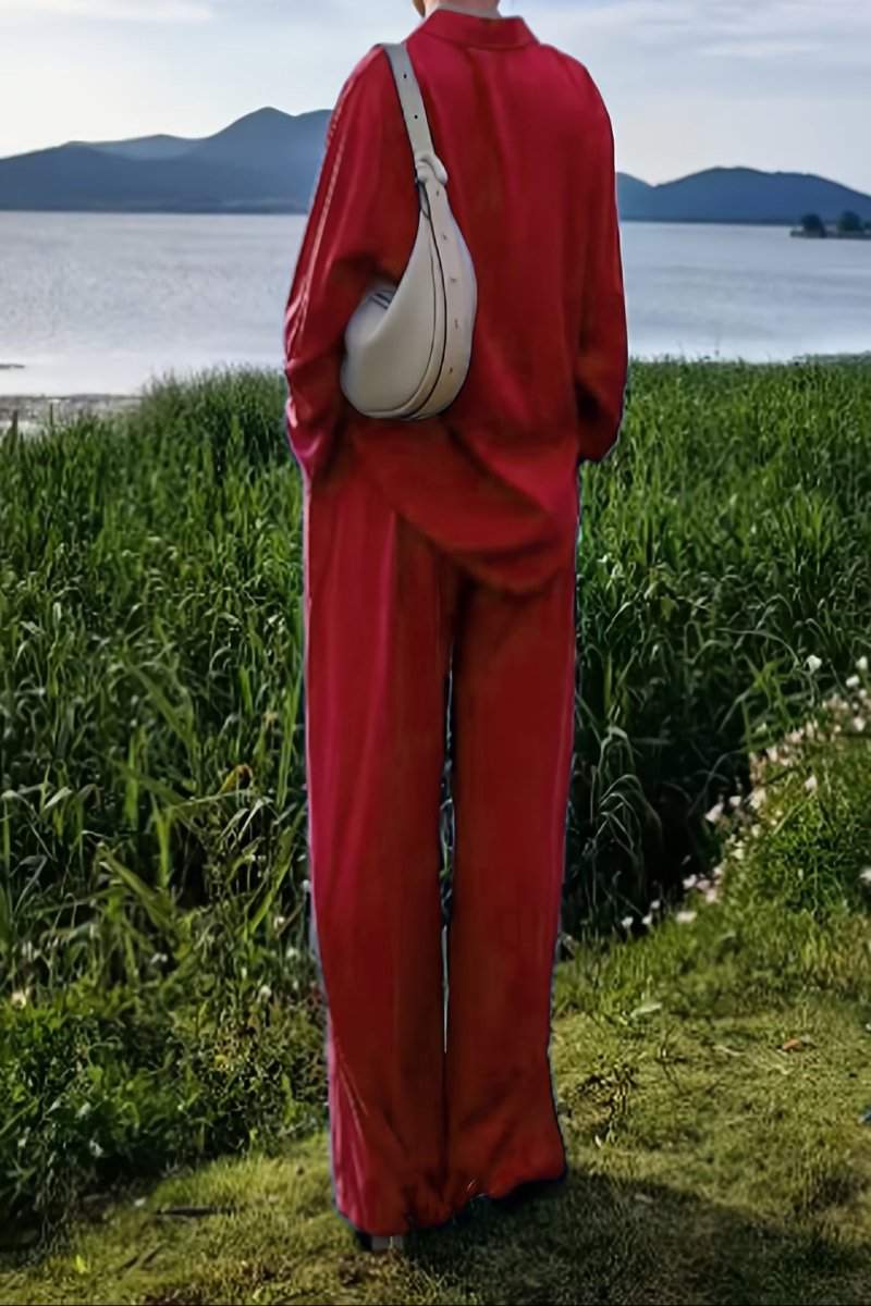 Wear the full set for a sleek, coordinated outfit or pair the long sleeve top with denim for casual charm. Style the pants with a fitted blouse or knit for contrast. Add sneakers for relaxed days or heels to elevate your look.