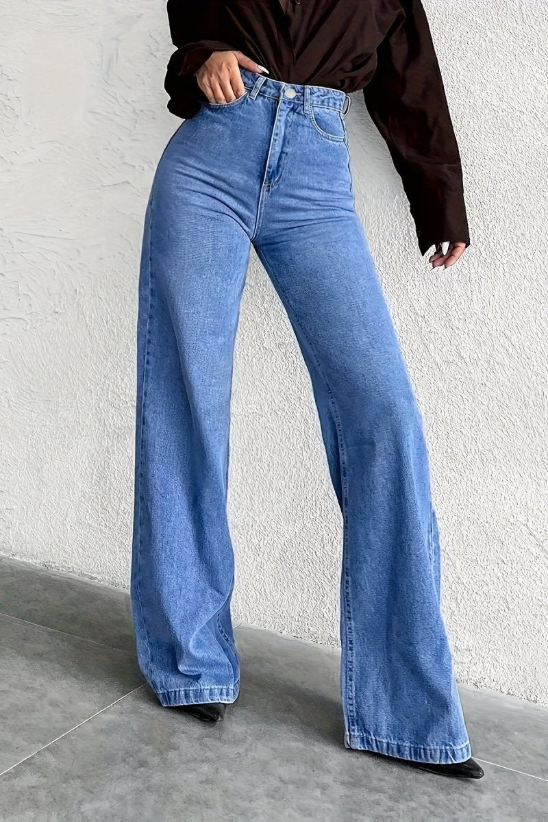 Designed to define your waist and elongate your legs, these mid-blue flare jeans blend vintage inspiration with modern comfort. The high-waisted fit enhances your natural shape, while the flared hem creates balanced movement and a confident silhouette.