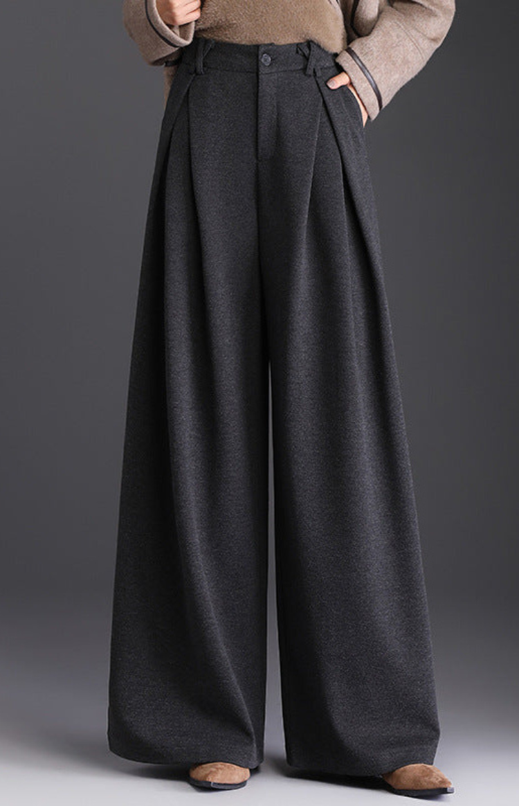 ATELÉRA – Fluid Wide Leg Pants with Deep Front Pleats & Wool-Like Texture