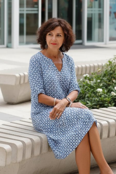 Gerda - Women's Vintage Summer Dress with Split Neckline & 3/4 Sleeves 1