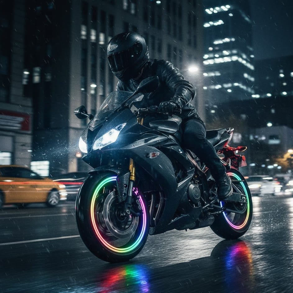• Boosts Night Visibility: Ensures other drivers and riders can see you clearly in low light.
