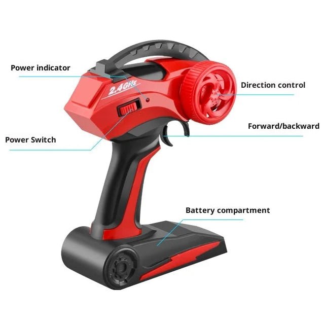 With a powerful 6-wheel-drive system and a top speed of 52 km/h, this truck delivers thrilling action on dirt, gravel, grass, or rocky paths. Bright LED lights make every ride stand out, even in low-light conditions, turning every adventure into a show.
