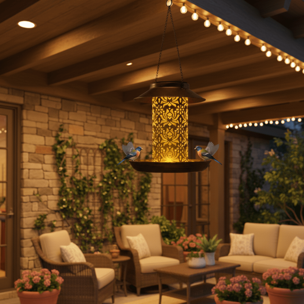 SOLARGLINT – Elegant LED-Lit Solar Bird Feeder for Outdoor Garden Decoration
