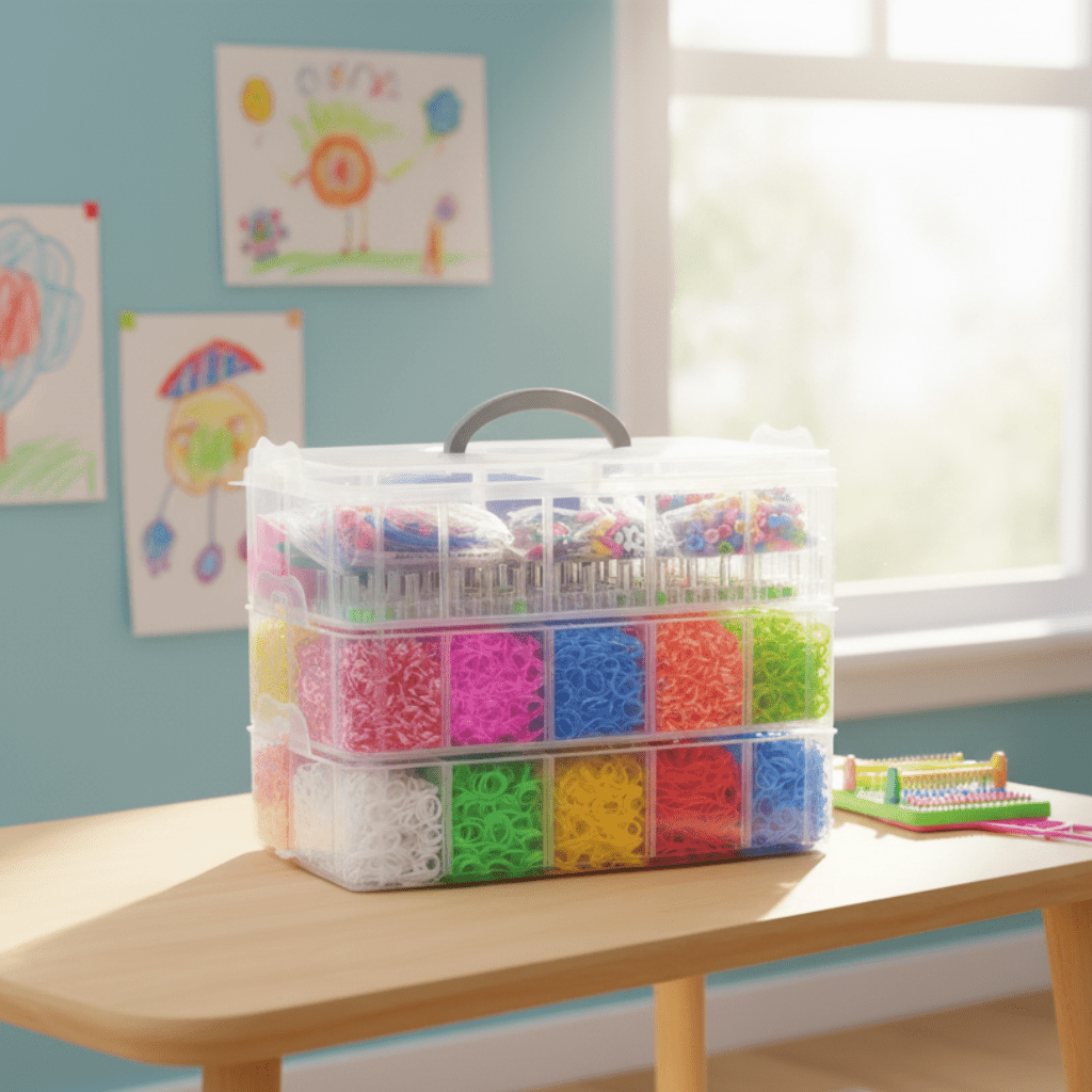 - Includes: Three-layer loom, assorted bands, and accessories.